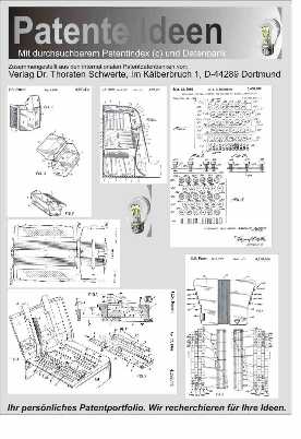Zu Ihrem Komfort, sind alle Patentschriften in einer Datenbank mit echtem Patentindex (c). Sie können in allen Titeln suchen, ohne einzelne PDF-Dateien öffnen zu müssen, wie das bei anderen Sammlungen gerne der Fall ist. Sie erhalten hier mehr als nur eine Pateninfo. Sie können aber auch durch ALLE Seiten schnell durchblättern, wenn Sie etwas suchen. Mit weniger sollten Sie sich nicht zufrieden geben. Wir geben Ihnen eine Updategarantie. Sollte eine Sammlung innerhalb von 6 Monaten nach Ihrem Kauf aktualisiert werden, erhalten Sie diese auf Anfrage kostenlos! Patentportfolios werden auf original Verlagsdatenträgern (CD oder DVD) ausgeliefert.