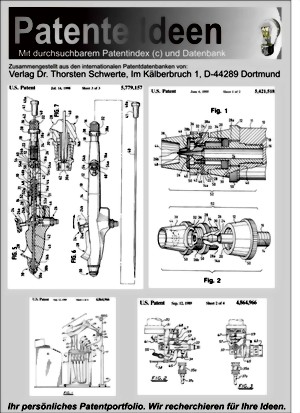 Normalerweise können es sich nur Firmen leisten umfangreiche Patentrecherchen, wie die hier angebotene, erstellen zu lassen. Die Zusammenstellung solcher Sammlungen in gut archivierbarem Format ist aufwendig und setzt kostenpflichtige Datenbankprogramme voraus. Manche amerikanische Firmen berechnen für die Recherche bis zu 3,50 Euro pro Patent! Unser Verlag bietet Ihnen hier diese Leistungen zu einem unschlagbar niedrigen Preis an. Sollte Ihnen ein Sie interessierendes Thema fehlen, so fordern Sie uns und wir erstellen Ihnen ein Angebot, zu dem Sie nicht "Nein" sagen können (allerdings nur für private und nicht kommerzielle Zwecke, für Firmenanfragen existieren andere Bedingungen (Anfragen erwünscht)).